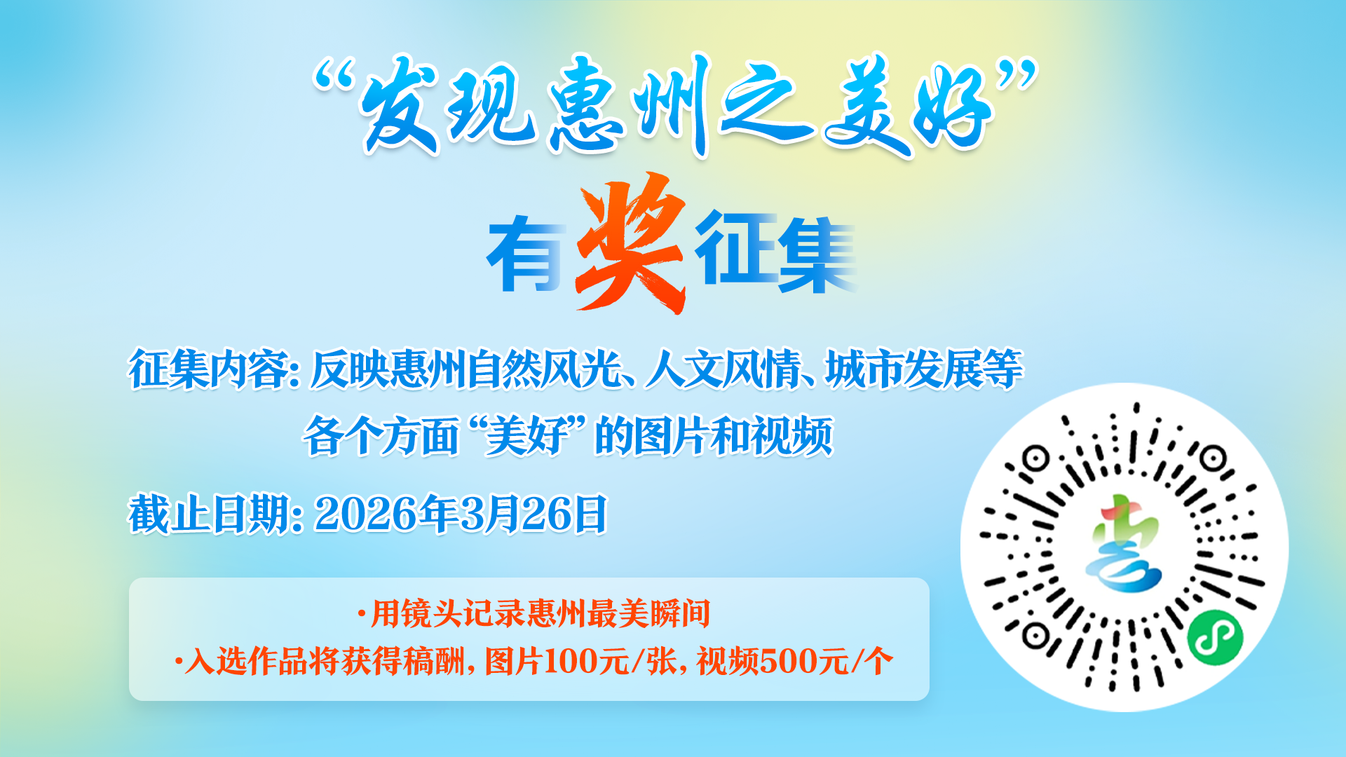• 現(xiàn)金獎勵!全民有獎?wù)骷l(fā)現(xiàn)惠州之美好!